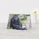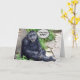 Relaxing chimpanzee leaning on a rock for humorous birthday.