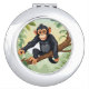 Chimpanzee with her cute tail on the branch greets compact mirror