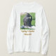 I love this shirt. I had written to the artist asking her if this picture was available on a shirt, and she wrote me back telling me where I could find the shirt. These shirts can be custom made to have a different saying. I loved this saying and went with it. The artist wrote me back later to tell me that she had seen my order go through. How's that for service? Pretty special. It's just as displayed. Perfect!
