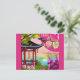 Anyone would love to receive this Chinese travel postcard featuring a watercolor illustratio of a pagoda and pink fan in China!