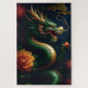 A magnificent Chinese dragon in a coiled stance, with shimmering golden horns and vibrant green scales, is shown in this highly realistic digital artwork. Surrounded by vivid flowers and a cosmic night sky, this image mixes fantasy, culture, and beauty to create a stunning vision. Perfect for posters, merchandising, or tattoo ideas. Chinese Dargon with puzzles .