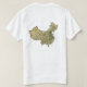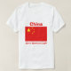 An editable title and slogan accompanies the yellow stars on a red background of the Chinese flag on the front of this t-shirt. The back displays a detailed map of China.