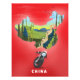 China Illustrated map travel poster motorbike 'Great wall' print.