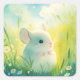 This charming illustration features an adorable chinchilla sitting in a sunlit meadow, surrounded by delicate wildflowers and lush green grass. The fluffy white chinchilla gazes up with large, sparkling black eyes, its tiny paws held close to its chest, giving it an innocent and endearing expression. The background is bathed in warm golden light, with soft blue skies and drifting white clouds creating a dreamy, peaceful atmosphere. The gentle glow and floating flower petals add a magical touch, making this sticker perfect for animal lovers and those who adore soft, nature-inspired designs.