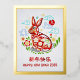 Chinese 2023 New Year Papercut Rabbit Real Gold Foil Holiday Postcard