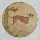 The painting "Ten Fine Hounds:Tawny-Yellow Leopard" by Giuseppe Castiglione (also known by his Chinese name, Lang Shining), is a stunning representation of a noble canine. Castiglione, an Italian artist who served the Qing court, masterfully blends Western perspective techniques with Chinese brushwork. The painting depicts a majestic dog, the Ruhuang Leopard, standing alert with its eyes piercing and fur detailed with meticulous care. The background is minimalistic, allowing the subject to dominate the canvas, highlighting the animal's robust physique and regal demeanor. Castiglione's attention to the dog's texture and form showcases his exceptional talent in realism, making the creature appear almost lifelike.