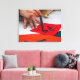Very impressive product! The canvas is sturdily made. It features a saw tooth hanger on the back, making it easy to "try out" the canvas in several rooms until I found the best location. It attracts good comments from my friends. I love it! The printing is wonderful! Colors are as bright and crisp as they appeared on the website.