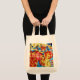 The printing came out very well, better than I had anticipated. The natural color fabric is sturdy with strong seams and comfortable handles. This tote fits easily over my shoulder. As it is filled, the bottom flattens out--very cool! I would buy this product again. This grocery tote holds a lot of groceries! The image quality was very good. The colors were a little darker than I had expected. The darkness may have been due to printing on a natural color fabric rather than on white. The cat design is attractively centered on the tote. The spirit of the design is very lively, just as it appears on the Zazzle website.
