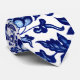 Chinese Dark navy blue floral pattern on white Neck Tie