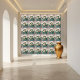 This vibrant tile features a traditional Chinese dragon design in a chinoiserie style, surrounded by floral and wave motifs. The artwork incorporates rich green, gold, and red tones, making it a striking piece for any space. Ideal for adding an exotic touch to kitchens, bathrooms, or as a decorative accent.