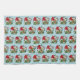 A Chinese dragon playing with Christmas lights on a Christmas wreath with Christmas balls, red bow, ornament, Christmas lights, evergreen tree in a backdrop of blue