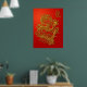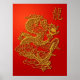 Chinese Dragon Illustration on Auspicious Red Background with Chinese Calligraphy Poster