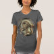 I love wearing a reprint of my colored pencil drawing of Annie the cat looking over the hillside. My illustration is based on a picture I took of Annie the manx cat. The printing turned out lovely, and the shirt is soft and thick. The American Apparel shirt run on the smaller size, so I always order a large or extra large.
