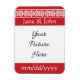 This magnet has a cherry red border across the top and bottom with a pattern inspired by Chinese decorations and a spot for your names and the date of the special event. Finish customizing this for all of your friends and family by adding your favorite photo to the center, creating a great memento for all of your invited guests that will be both useful and easy-to-see in the meantime.