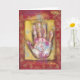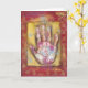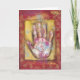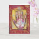 Mixed medium painting. Chinese energy hand with abstract acupuncture meridian points. Chinese calligraphy border.