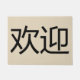 Chinese welcome mats for the door to your home designed in Chinese characters in large black lettering on a beige background with ability to change the background color. Welcome your guests and visitors to your house or place of business.