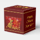 Chinese lanterns with fireworks as background with golden paper-cut of a cute rat + large golden 2020, golden Year of the Rat, greeting "Happy New year" in Chinese and golden rat ideogram. Design on classic cube favor box with dark red background + Happy Chinese new Year (to customize if you want). Matching greeting card, postcard, invitations and more... Perfect for a Happy Chinese New Year of the Rat 2020.