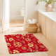 Chinese Lotus Floral Oriental Asian Pattern Pretty Bath Mat. Trendy bathroom decor with a rich red and gold floral lotus oriental asian pattern. Perfect easy way to spruce up your decor for Chinese New Year.