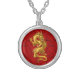 Custom silver plated necklace featuring Chinese gold dragon with red fan background. Makes a nice gift for Chinese Dragon birthday and Chinese New Year gifts. • Happy Birthday, Wood Dragons of 2024! • You are a Dragon if you are born these years: 1928, 1940, 1952, 1964, 1976, 1988, 2000, 2012, 2024. Several styles available.
