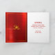 “Happy New Year” typography in both Chinese and English and a stunning visual of a graphic multi color cut paper dragon, clouds and stars overlay a traditional Asian light gray circle pattern and brushed red faux foil border on the front. On the inside, a yellow cloud and star visual over red faux foil on the left hand side, and your personal message in red on the right. Feel the warmth and joy of the holiday season whenever you send this stylish yet modern, personalized 2024 Chinese Lunar New Year of the Dragon folded vertical greeting card. Make sure someone special receives this greeting!