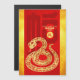 Chinese golden Snake paper cut-out with red Chinese ideogram for Snake onto a golden circle + "Happy New Year" in English and Chinese + small 2025 on red textured paper (image printed) as background with a large dark red Chinese ideogram of the Snake. Design on vertical magnetic card. Matching greeting card, Holiday postcard, craft products and more soon... Perfect for Chinese New Year of the Snake 2025 or Birthday (people born in Snake Year). --------- "The snake (蛇) is the sixth of the twelve-year cycle of animals which appear in the Chinese zodiac related to the Chinese calendar.