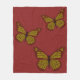 Patterns inspired by traditional Chinese decorations adorn the wings, body, and spots of this monarch butterfly in shades of red, gold, and brown.
