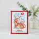 “Happy New Year” red foil typography in both Chinese and English and a stunning visual of a graphic multi color cut paper tiger with fans and clouds, overlay a traditional light gray circle pattern and brushed red foil border on the front. A multi color cloud and fan visual, your personalized note, and return address are on the back. Feel the warmth and joy of the holiday season whenever you send this stylish yet modern, personalized 2022 Chinese New Year of the Tiger postcard. Make sure someone special receives this greeting!