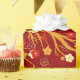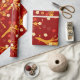The product features a vibrant, seamless pattern inspired by traditional Chinese motifs, celebrating themes of luck and prosperity. The design showcases golden branches adorned with blossoms and decorative elements, set against a rich red background—a color often associated with good fortune in Chinese culture.