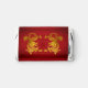 Double Chinese goldenn Dragon paper-cut with red old Chinese ideogram for Dragon in the center + "Year of the Dragon" on traditional decorated pattern as background. Design on Hershey's Miniatures candy favors. Matching greeting card, Holiday postcard, craft products and more soon... Perfect for Chinese New Year of the Dragon or Birthday (people born in Dragon Year).