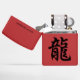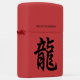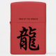 Red Zippo lighter with customizable red ideogram of Dragon. Perfect for people born in Dragon year. ----- "The Dragon (simplified Chinese: 龙; traditional Chinese: 龍) is one of the 12-year cycle of animals which appear in the Chinese zodiac related to the Chinese calendar. The Year of the Dragon is associated with the Earthly Branch symbol 辰, pronounced chen. It has been proposed by one academic researcher that the Earthly Branch character may have been associated with scorpions; it may have symbolized the star Antares." People born within these date ranges can be said to have been born in the "Year of the Dragon", while also bearing the following elemental sign: 22 January 1928 - 9 February 1929 = Earth Dragon,