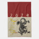 Chinese black paper-cut Dragon (model n°3) + golden "Year of the Dragon" (original handwriting) + large 2024 to customize if you need. Design on kitchen towel with dark red color background. You can easily change Year (font, color, size and position) and background color by clicking the customize button. Available with other paper-cuts. Perfect for Chinese and Vietnamese New Year of the Dragon 2024 or birthday (people born in Dragon Year).