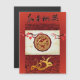 Modern and traditional design with golden Chinese Horse paper-cut (image printed) on dark red round shape into calligraphic background (Fu ideogram meaning luck or fortune) in grey tones + pink blossoms of peach trees. Design on vertical magnetic card + large 2026 (original handwritting). Matching square invitation with text for the celebration of Chinese new Year, greeting card, holiday postcard and party supplies (soon). Perfect for Chinese New Year of the Horse 2026.