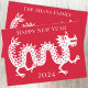 A modern Chinese New Year dragon design. Change the family name on the back and any of the text on the front to personalize.