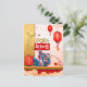 Beautiful Chinese dragon on a roof + lantern with ancient chinese red ideogram into it + golden "Year of Dragon" (Original handwriting) + wishes in Chinese into a red rectangle + golden 2024. Design on vertical holiday postcard. Matching greeting card and square sticker. Perfect for Chinese New Year of the Dragon 2024.
