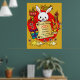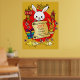 Celebrate the Chinese New Year with this bold, cute cartoon design with a rabbit holding a scroll. Bright gold and red with a fish carp, flower, and more.