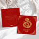 Introducing our elegant Holiday card for the Year of the Snake, designed to enhance your 2025 Chinese New Year celebrations. This beautiful red card features a stunning golden Snake, symbolizing wisdom and prosperity. Share your blessings and good fortune with these exquisite cards this New Year! Use the design tools to customize the text, font and colors. Check the 'remove from the back' box to easily remove the zazzle logo. Also available as digital download for evites.