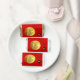 Composition with golden traditional Chinese paper-cut of a Dragon into a golden circle + small modern lettering for Year of the Dragon 2024 and Chinese Dragon Ideogram Symbol onto a small black circle. Design on Hershey's Miniatures with red background. Matching greeting card, holiday postcard, invitation and more soon. Perfect for Chinese New Year of the Dragon 2024 or birthday (people born in Dragon Year).