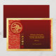 An elegant visual of a golden snake with blossoms into a circle (inspired by traditional Chinese paper-cut) with red circle overlay a red and yellow traditional Asian pattern + graphic "HAPPY NEW YEAR" in Chinese and English and old Chinese calligraphy for "snake" on the right on gradiant red color band. Design on holiday postcard with wishes to personalize. Matching greeting card, holiday postcard, square flat card, round flat card, vertical flat card and more soon.