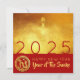 Modern design with golden textured paper (printed image) with Large golden Chinese wishes + large 2025 in red + small Snake paper cut-out with yellow texts HAPPY NEW YEAR and Year of the Snake onto a red background. Design on square flat card invitation + texts (for celebrating The Chinese New Year) to customize in back. You can easily change texts by clicking the customize button. Matching greeting card, holiday postcard, sticker, party supplies and more soon... Perfect for a timeless and modern Chinese New Year of the Snake 2025.