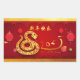 Cute paper-cut of a Snake with drop shadow placed onto a decorative background with stylized Chinese lanterns and flowers. Design on horizontal rectangular sticker with Happy New Year in Chinese and Year of the Snake + golden textured paper (printed image) as background. You can easily change position and size of the Snake, Chinese wishes and Year of the Snake (text image). Matching greeting card, postcard, magnet, (invitation, craft supplies, party supplies and more soon)... Perfect for Chinese New Year of the Snake 2025.