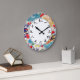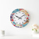 Chinese Number Clock with vintage animal nature art depicting a nature scene with blue ocean waves, in a beautiful sea marine themed design with red flowers. Pretty floral water themed traditional art from Japan with kanji symbols for the numbers 1-12 in Japanese or Mandarin or Cantonese, as they are the same I believe.
