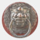 Traditional Chinese bronze doorknob in the shape of a lion head, guarding the gate of a temple