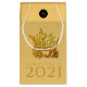 Elegant design with golden paper-cut of an Ox. Design on small gift bag with Large 2021, Year of the Ox and monogram onto black round + same background image in back. You can easily change text (font, color, size and position) by clicking the customize button.