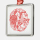 Chinese New Year of the Rooster with tradictional Chinese papercut in red on classic white square ornament. Matching products.