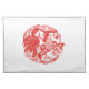 Chinese New Year of the Rooster with tradictional Chinese papercut in red on classic white placemat. Matching products.