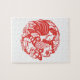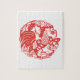 Chinese New Year of the Rooster with tradictional Chinese papercut in red on white puzzle. Matching products.