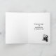 This birthday card features a 9th century Chinese poet and his sidekick in black and white. Han Shan, also known as Cold Mountain, stands with Pickup as they contemplate the universe. A small image is inside. The text reads: Happy Birthday. Wishing you gifts of serenity and joy. It can be customized or removed.
