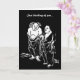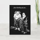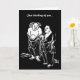 This friendship card features a 9th century Chinese poet and his sidekick in black and white. Han Shan, also known as Cold Mountain, stands with Pickup as they contemplate the universe. A small image is inside. The text reads: Just thinking of you. It can be customized or removed.