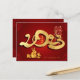 Chinese firecrackers as background for a large golden 2023 with greeting in Chinese inside the number + "HAPPY CHINESE NEW YEAR" and golden paper-cut (printed image) of a rabbit. Design on horizontal holiday postcard with the same background in back. Matching greeting card, invitation, and more soon...