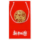 Large wishes "Happy New Year" in Chinese (white modern calligraphy) and in English, Tiger round golden paper-cut (image printed - model n°1). Design on small gift bag with red background. You can easily change background color by clicking the customize button. Available in large, medium and wine sizes too and with other tiger paper-cuts.